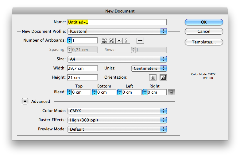 Let’s start by structuring our drawing. First of all, please open Adobe Illustrator and create a new canvas (command + n / ctrl + n) with 29,7 x 21 cm, CMYK, 300 dpi.
