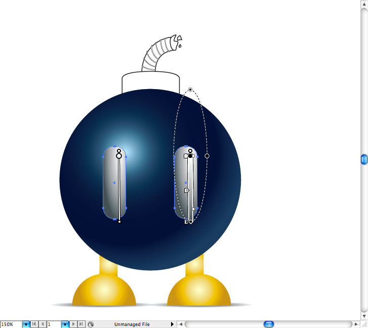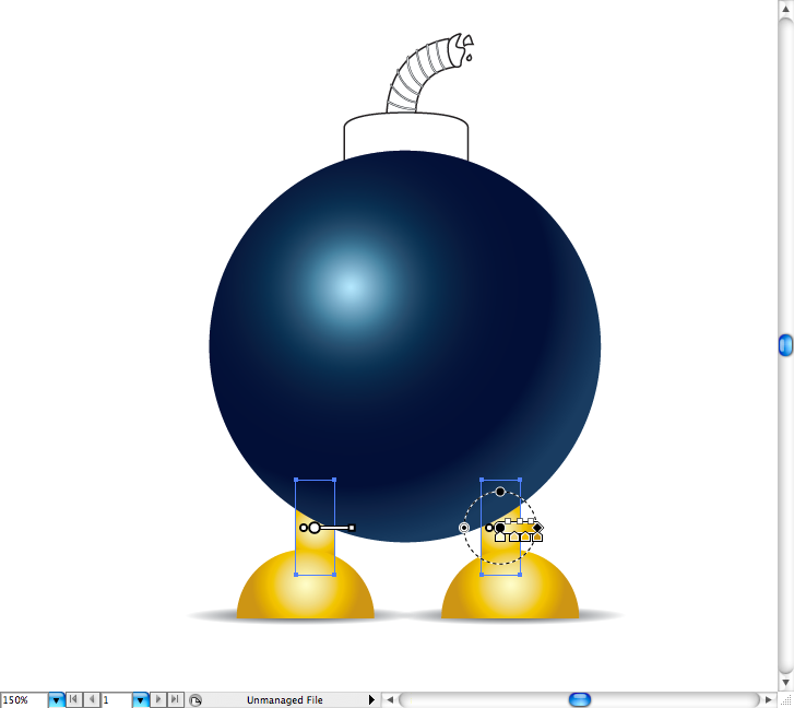 Let’s make the shadows bellows his feet, first make two spheres using the ellipse tool (L).