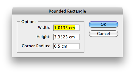 Now let’s create the rounded rectangles usingthe rounded rectangle tool that will be the eyes, use the same settings as the thumbnail bellow: