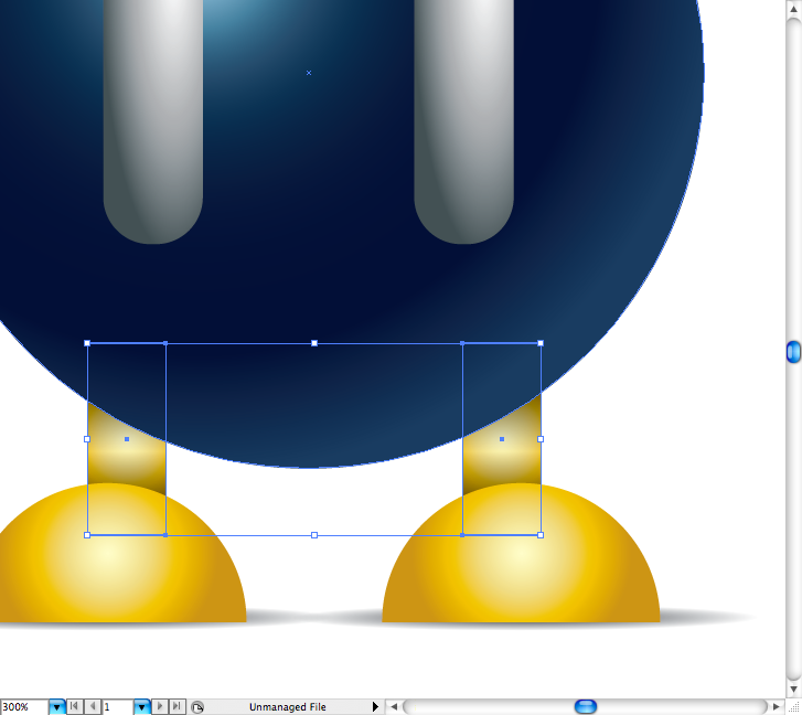 Using a specif setting on gradient I could create this shades without using blending modes, what make the files lighter. It’s pretty easy: first go to the gradient panel and create a black to black gradient, now select the white color and se it’s opacity to 0%. Now you can adapt it to each use, on the legs I decided to let only the middle withou shades as you can see on the thumbnail bellow.